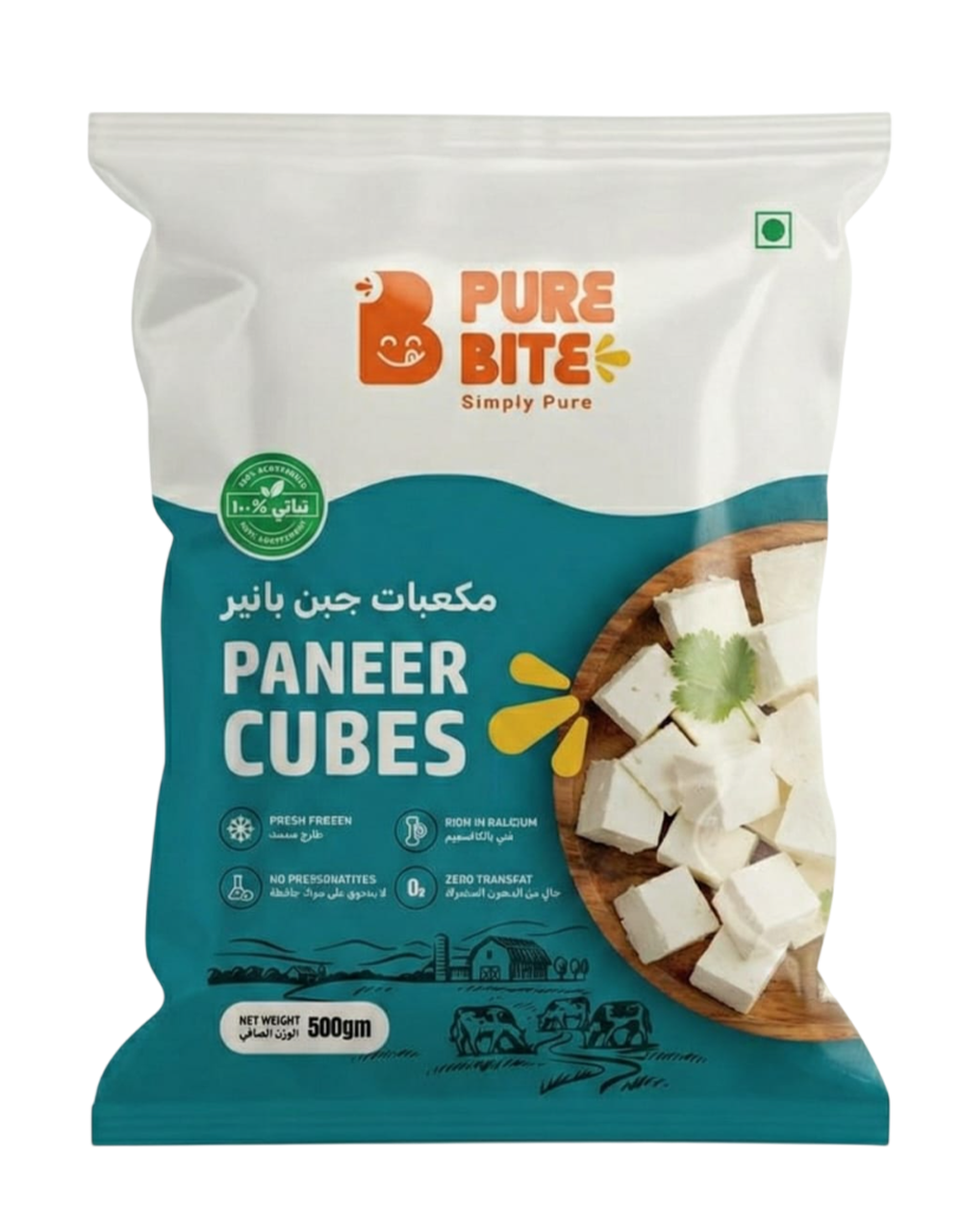 At Pure Bite, our Paneer Cubes are crafted to preserve the true essence of fresh dairy while offering the convenience of frozen perfection. Made from high-quality milk, these cubes are carefully processed and flash-frozen to lock in freshness, texture, and nutritional value.